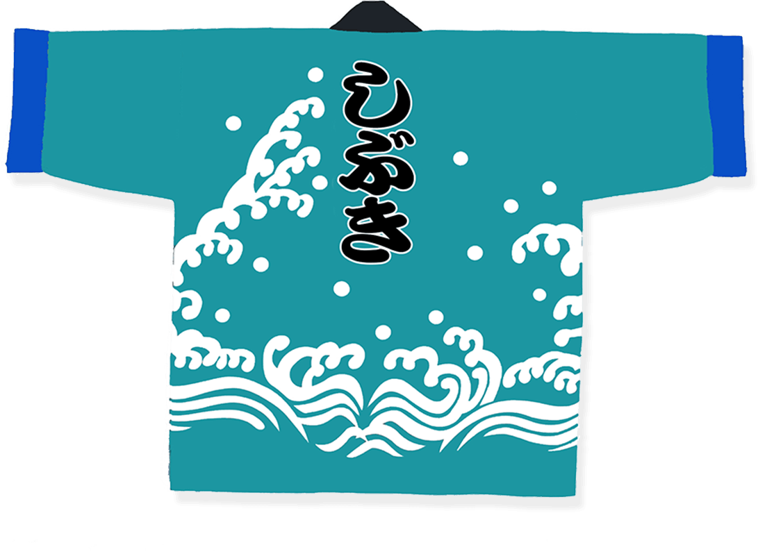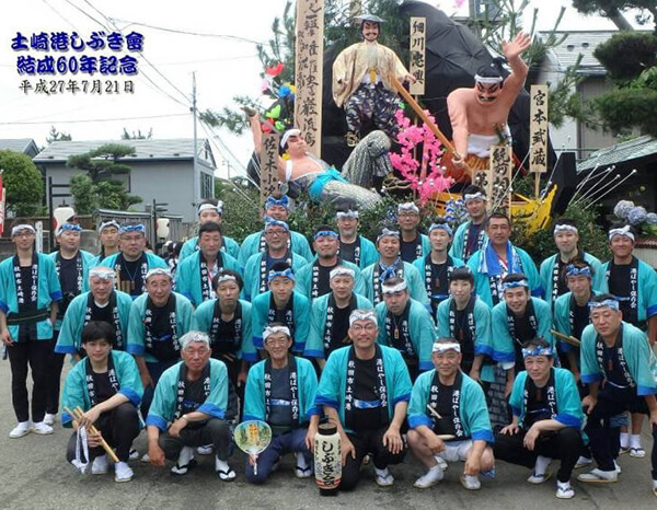 「しぶき会」は、故佐藤良夫氏がそれまで所属していた「港和会」の前身である、港ばやし保存会を期する所があって退会、昭和31年(1956年)のお祭りで、壱騎町二区のお囃子演奏を依頼されたのを機に結成したのが始まりです。創設当初のメンバーは、佐藤良夫氏、保坂賢次郎氏、角間崎清一氏、角間崎直一氏、粂岡金一氏の5名です(いずれも故人)。当会の半纏の青色は佐藤良夫氏が決め、ご母堂より青色は焼けやすい色だから、良い生地を使わないといけないとのアドバイスを受け、服地を作って半纏を作りました。昭和31年(1956年)のお祭りでは、笛の名人と謳われた菅原勇蔵氏の加勢を得て港ばやしを演奏しました。以降、土崎祭典は勿論の事、テレビ、ラジオ、舞台等に出演し、又、県外へと巾広く我が土崎が誇る港ばやしを紹介、格式高き真価を認識頂くため、日夜積極的な活動をしております。平成2年(1990年)に井川幸悦氏が第2代会長に就任、平成26年(2014年)保坂司氏が第3代会長に就任し、現在に至っています。(土崎港しぶき会創立40周年記念誌より一部抜粋)