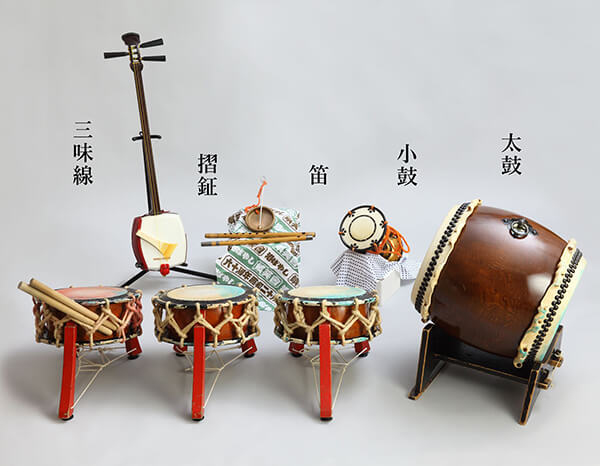 お囃子は、横笛・小太鼓(附締太鼓)・大太鼓(長胴太鼓)・三味線・小鼓・摺鉦で構成され、 「寄せ太鼓」「湊ばやし」「あいや節」そして「湊剣ばやし」「加相ばやし」などが演奏されます。